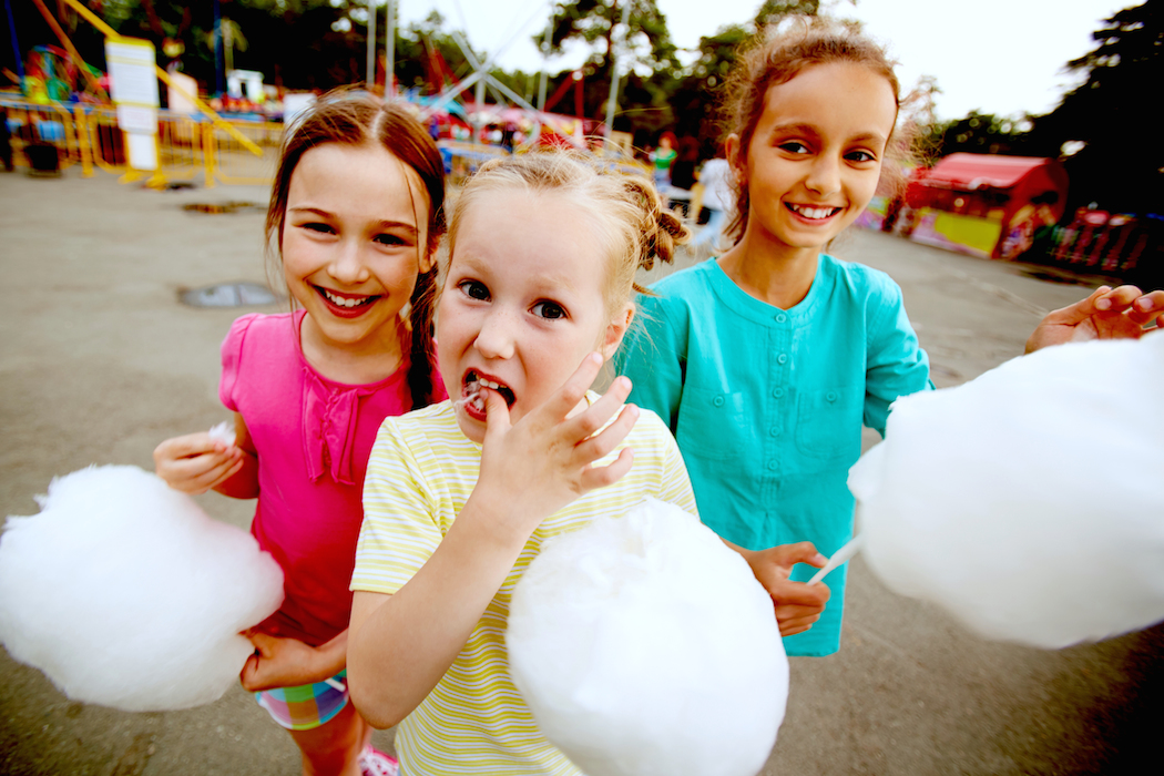 kids eating cotton candy amusement park carnival